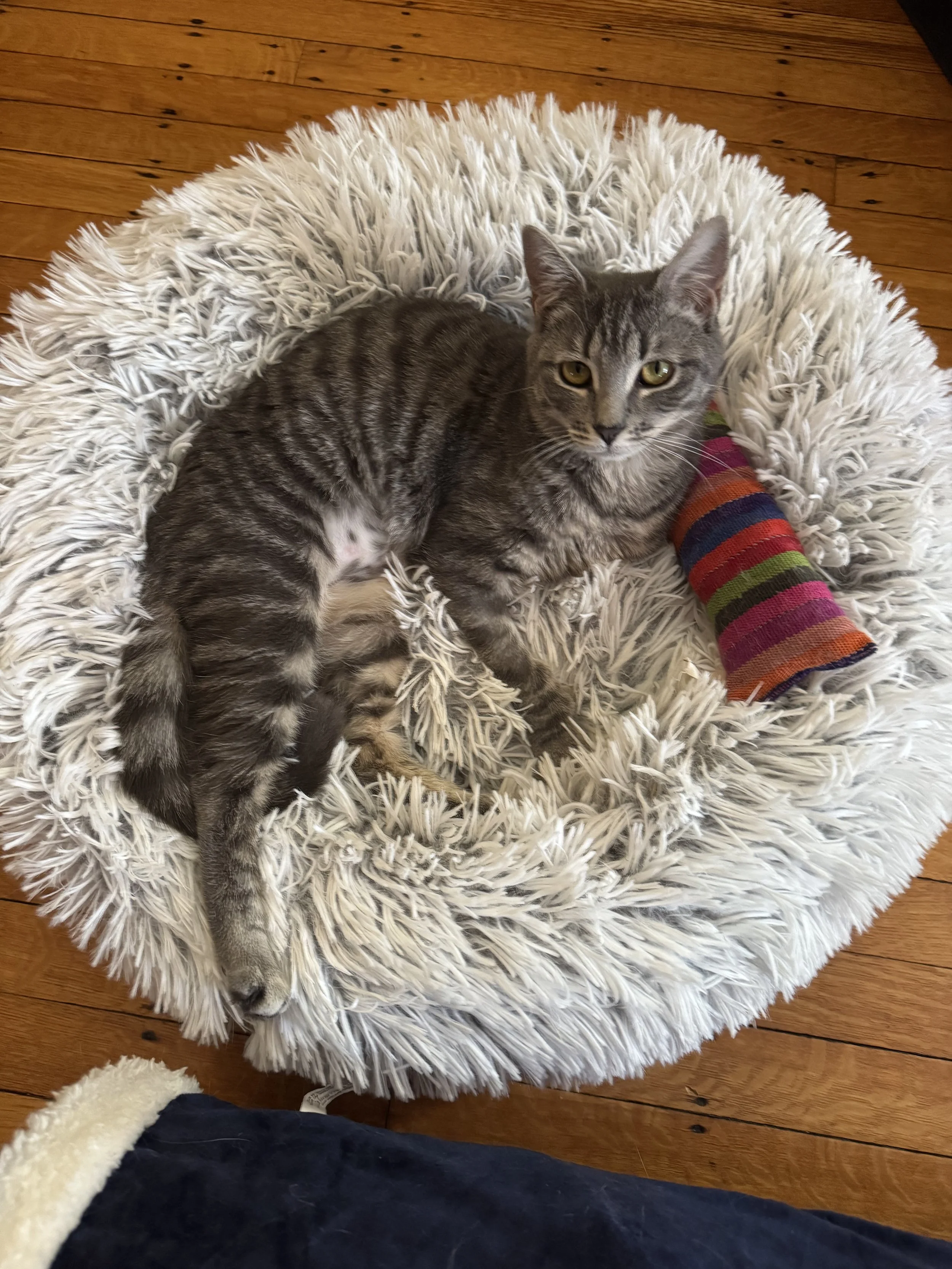 By nature, cats prefer stable routines. By establishing routines and schedules, we help cats new to our space feel safe and begin to understand the general rhythms of indoor life with humans.
